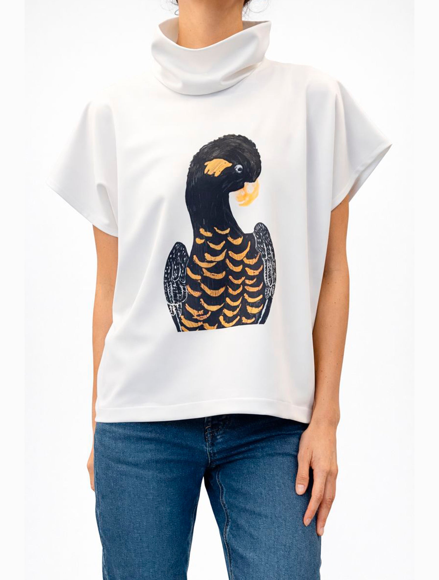Silueta de corte orienta y minimalista, material liviano y licrado., así es el buzo Tokio. Su estampado es obra de la artista Ana María Wiesner quien se inspira en la naturaleza y la retrata en una armoniía única de colores y trazos.
