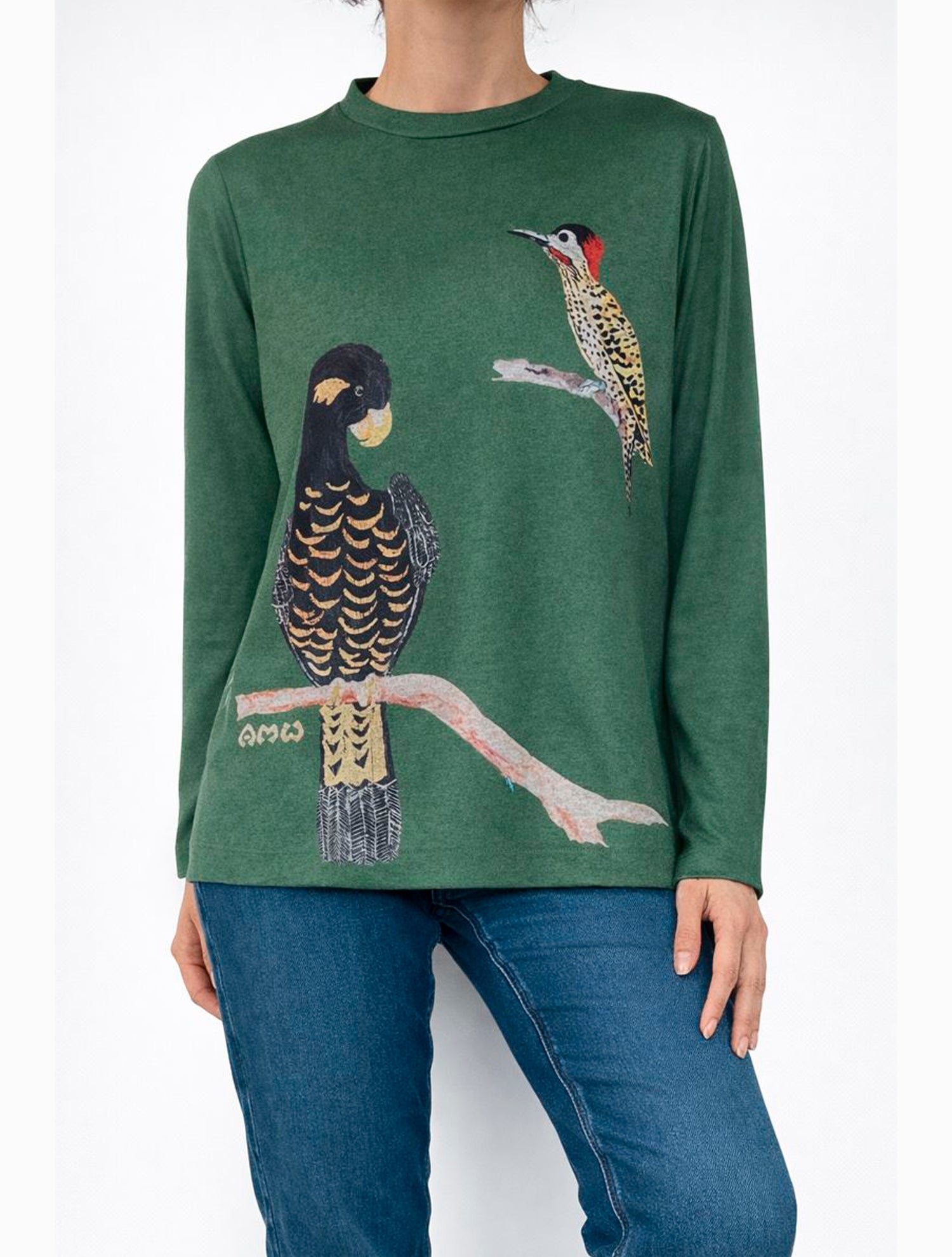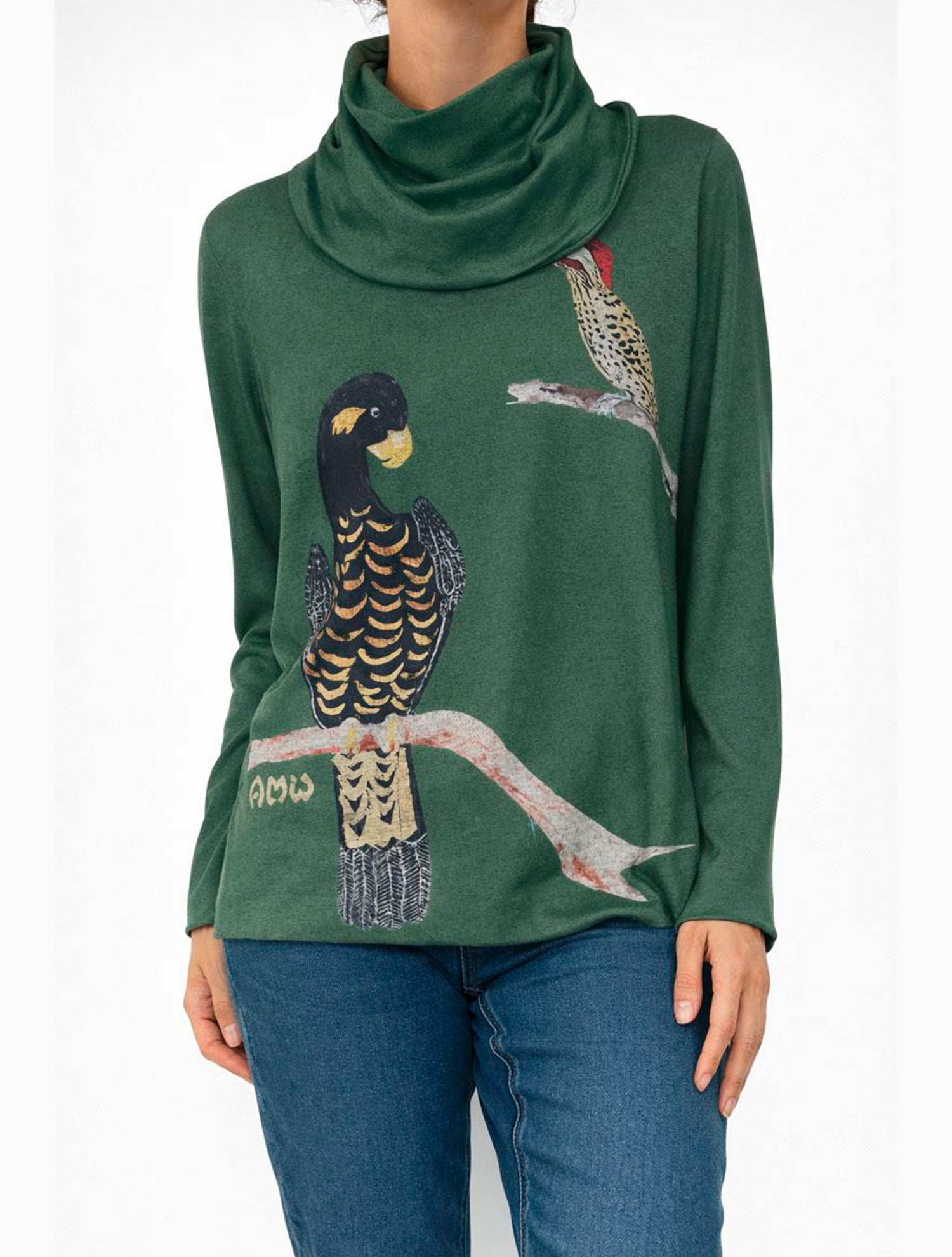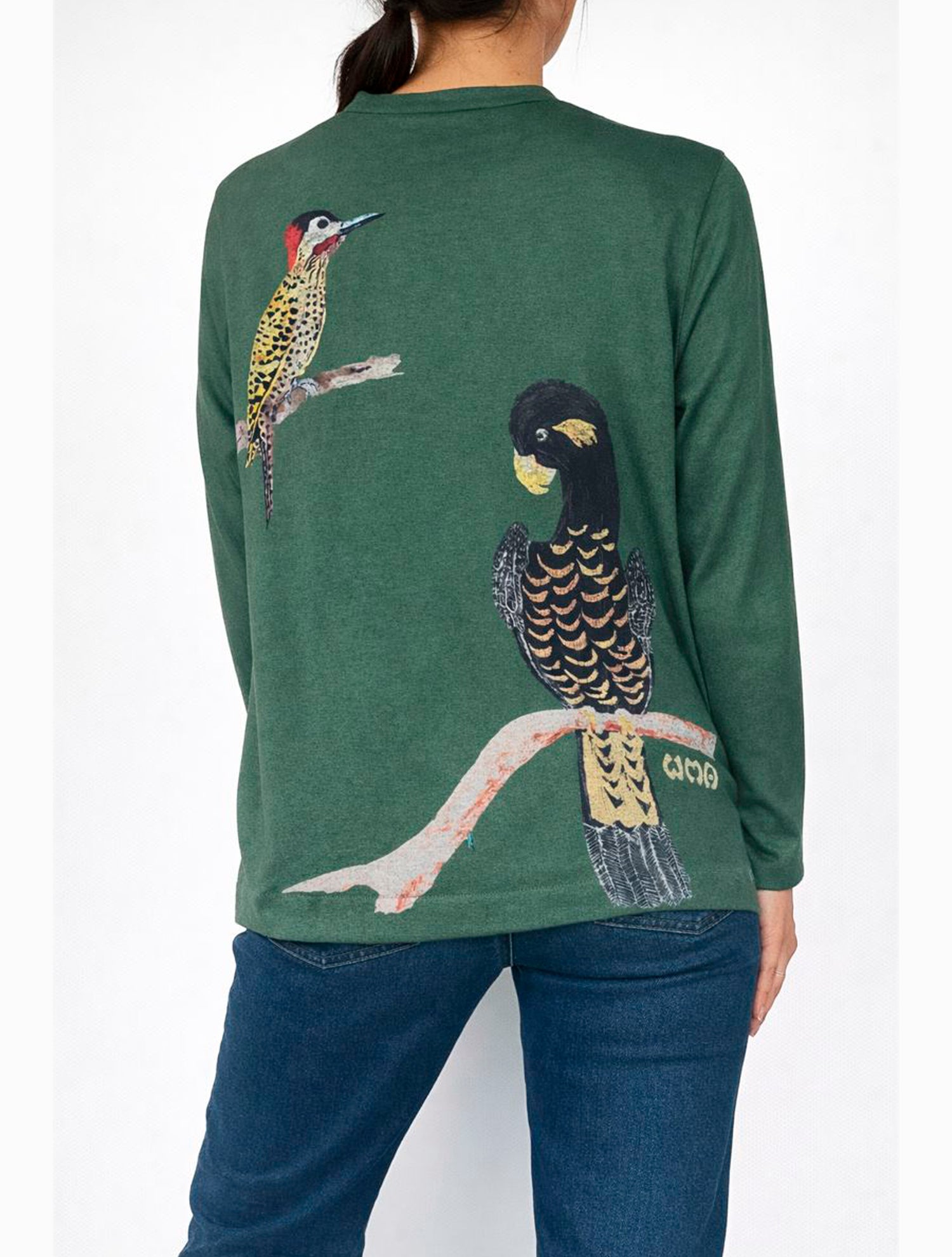 Suave, liviano, ligeramente abrigado, así es el buzo Pájaros. Su estampado es obra de la artista Ana María Wiesner quien se inspira en la naturaleza y la retrata en una armoniía única de colores y trazos. El cuello viene incluido pero es una prenda separada.