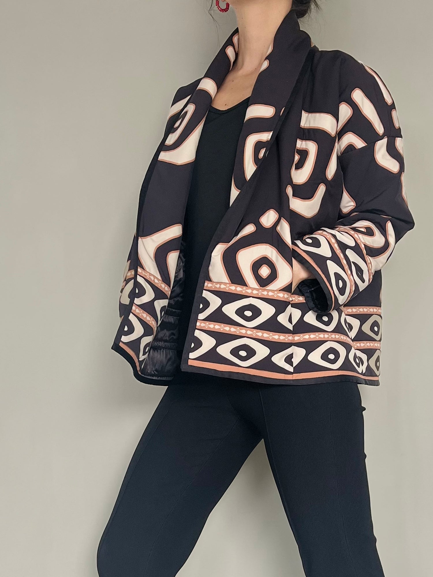 Prenda acolchada y cómoda, con prints precolombinos originales y un diseño relajado.