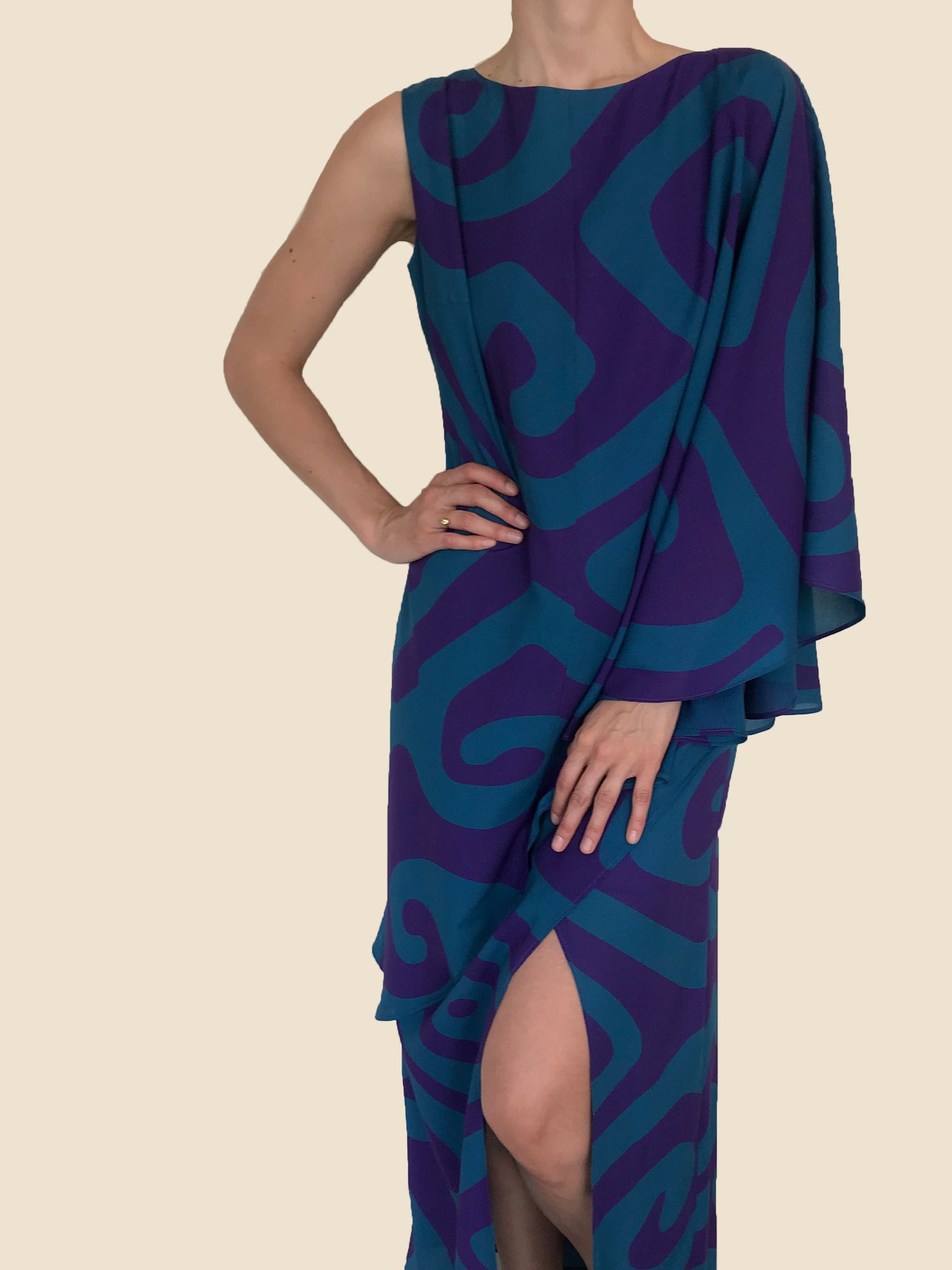 Una silueta única de capas y movimiento, abertura lateral y combinación de colores impecable. Así es el vestido Vieco Precolombino.
